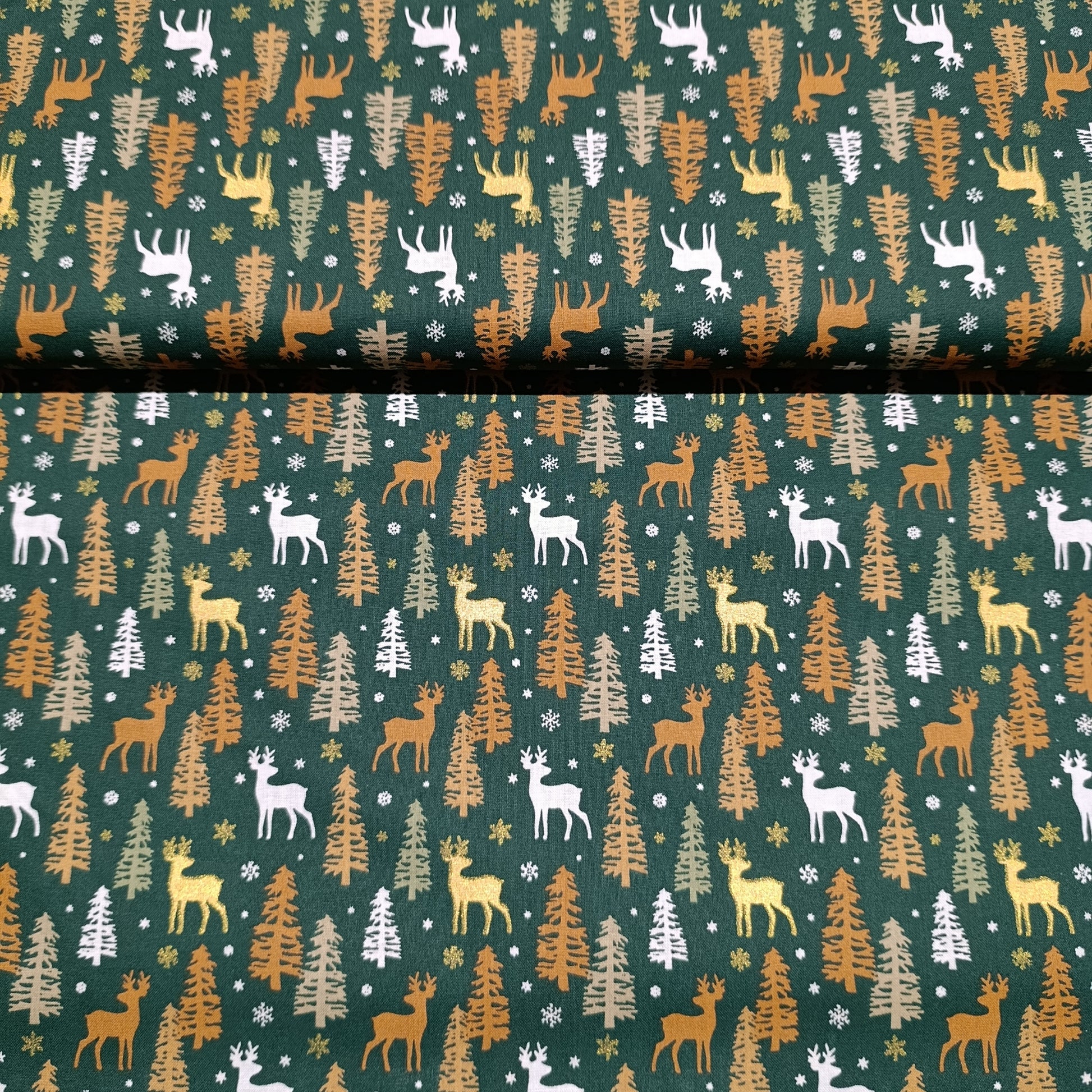 katoen kerst groen met rendieren